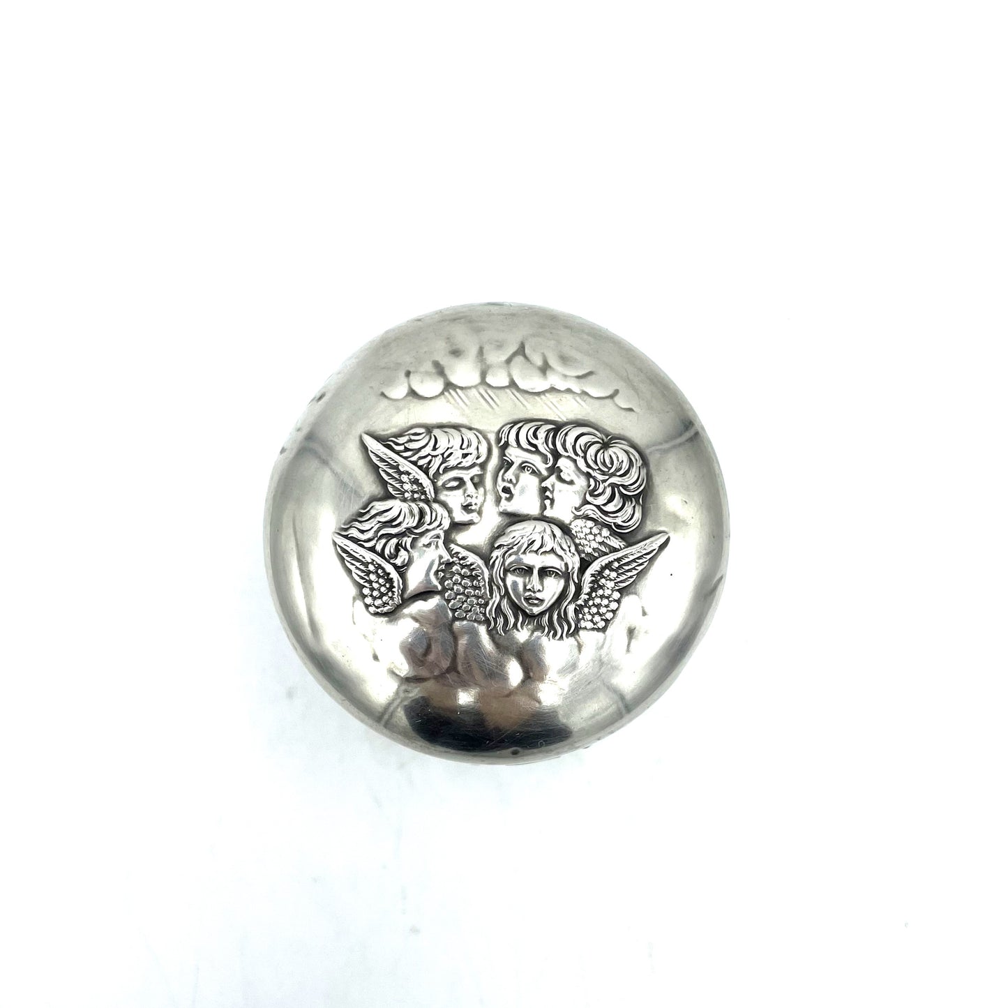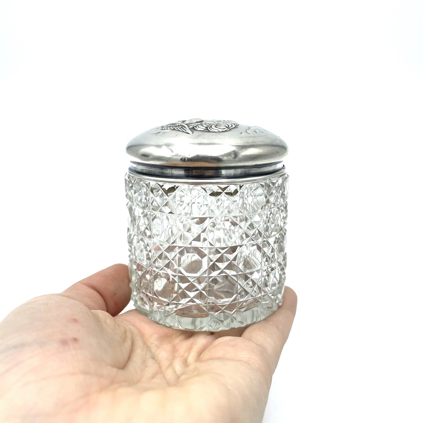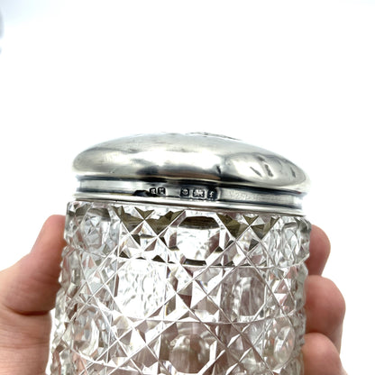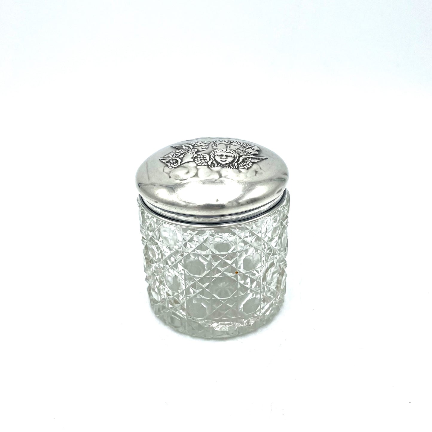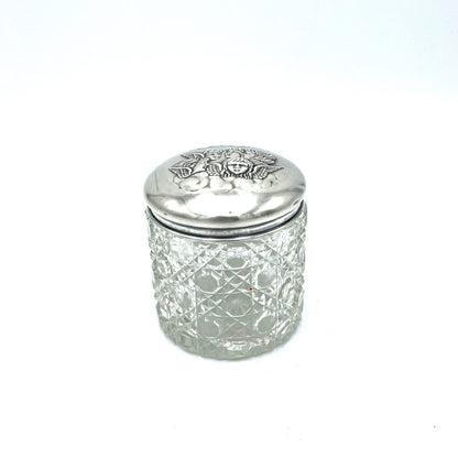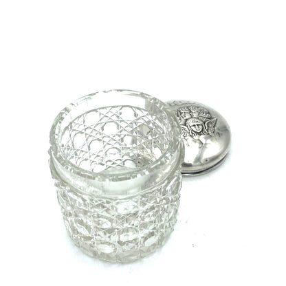 Antique 1905 Edwardian Cherubs Hallmarked Sterling Silver Glass Jar - 8cm
