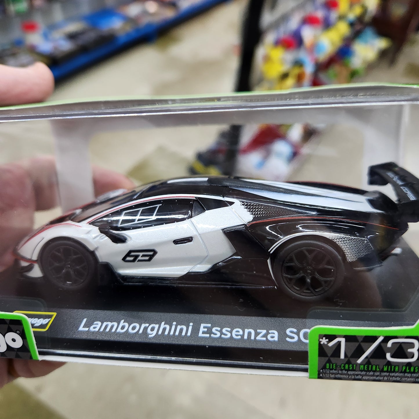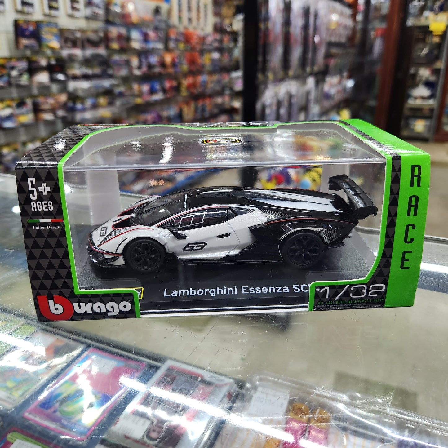 Bburago - Race Series - Lamborghini Essenza SCV12 (Black/White) #63 - 1:32 Scale