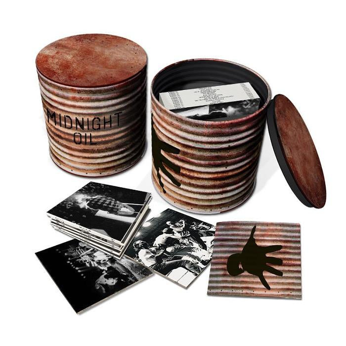 Each of the 12 discs has its own new unique artwork and the tank also contains a deluxe 36 page booklet containing rare photos and an exclusive 5000 word essay about Midnight Oil by renowned Australian writer, Andrew Stafford.