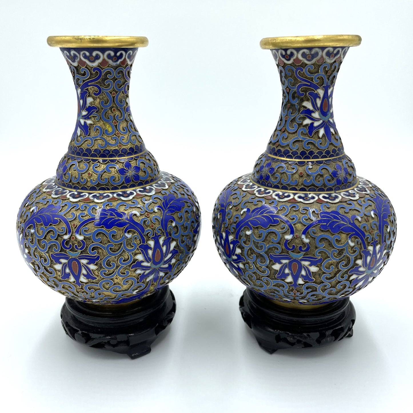 Pair of Large Cloisonne Vases on Stands - 18cm
