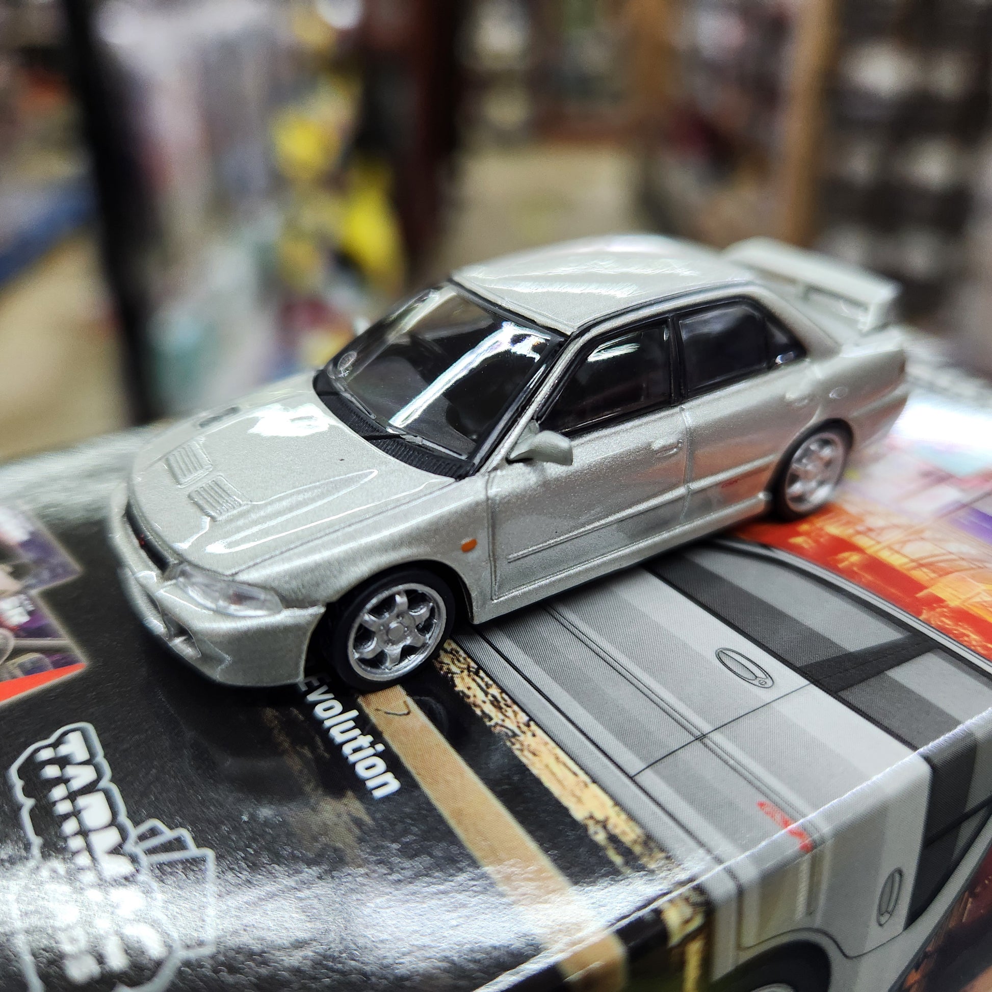 Tarmac Works - Mitsubishi Lancer GSR Evolution Silver (With Cards) - 1:64 Scale